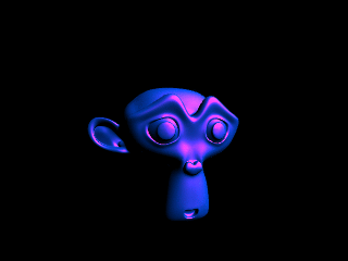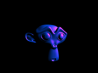 Another image with specular and diffuse lighting where we do not convert the normals to eye space. Again notice how the back of the monkey's head is not lit up by the light.
