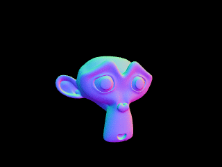When you correctly moved the normals to the same space then you'll see something like below. Notice how the light also brightens the back side of the monkey? This is correct because we do not move the position of the light which is shining onto the monkey.