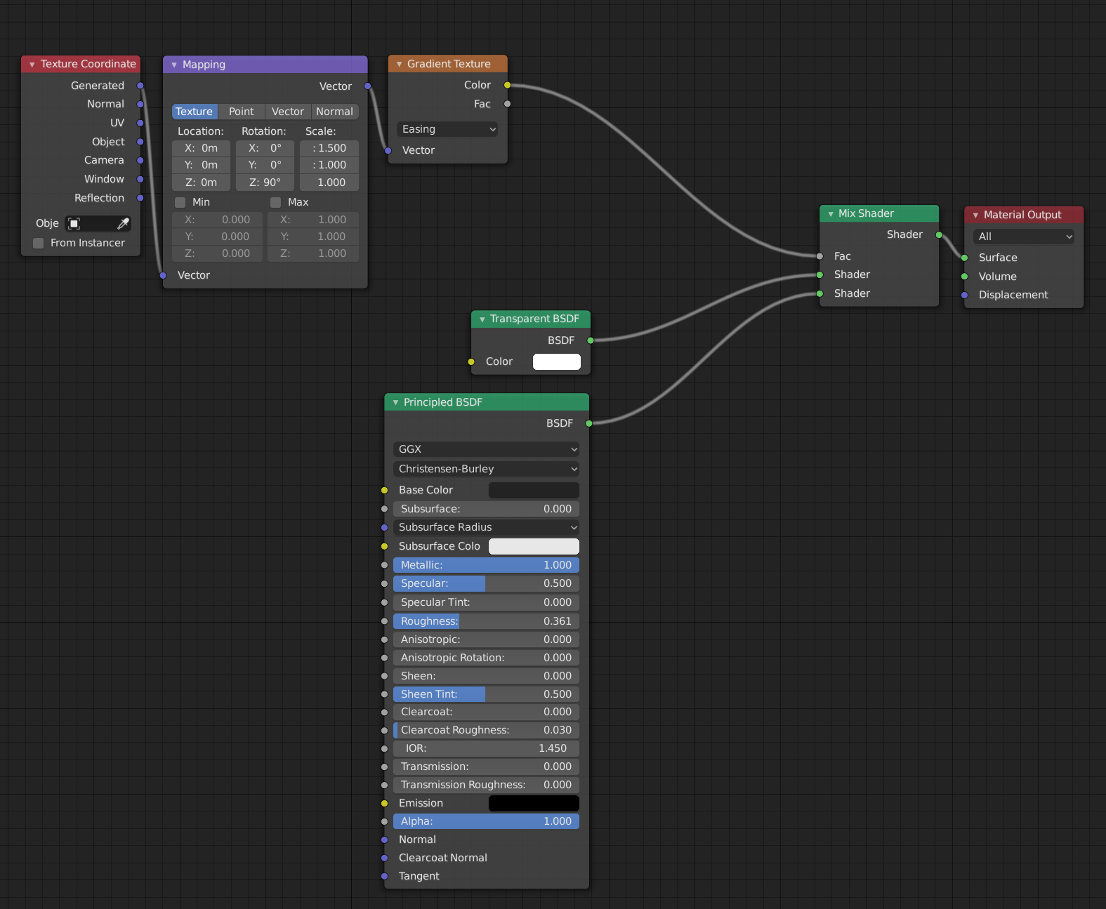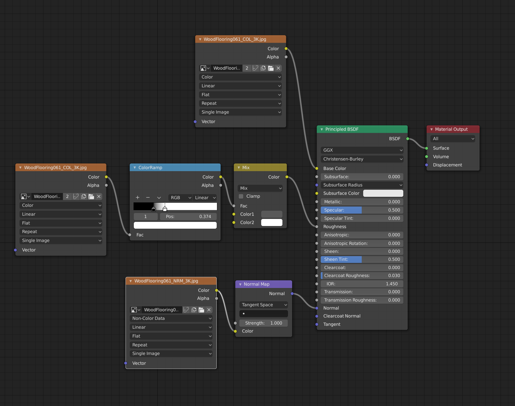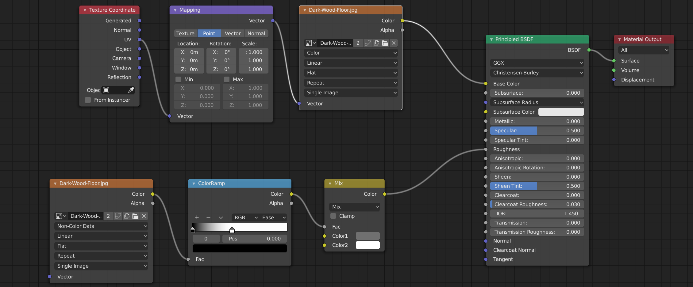 the roughness. Next, you connect the ColorRamp to a Mix RGB