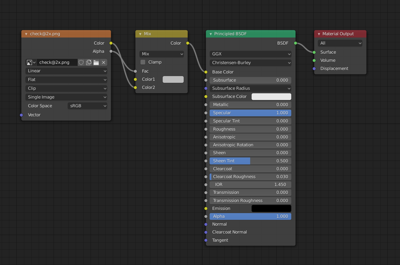 - Connect the color output of the Mix Shader to the Principled BSDF.