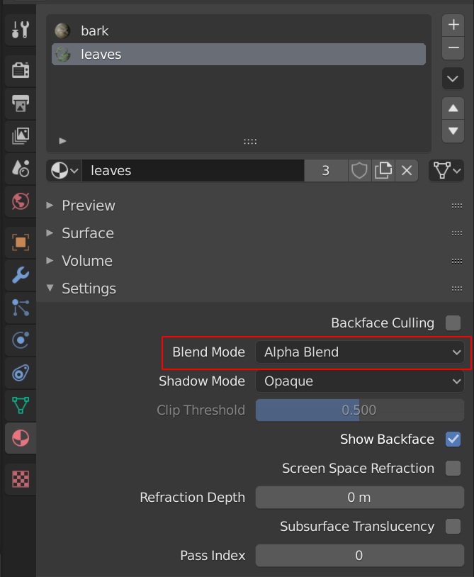 - Open the Materials panel > open the Settings group.