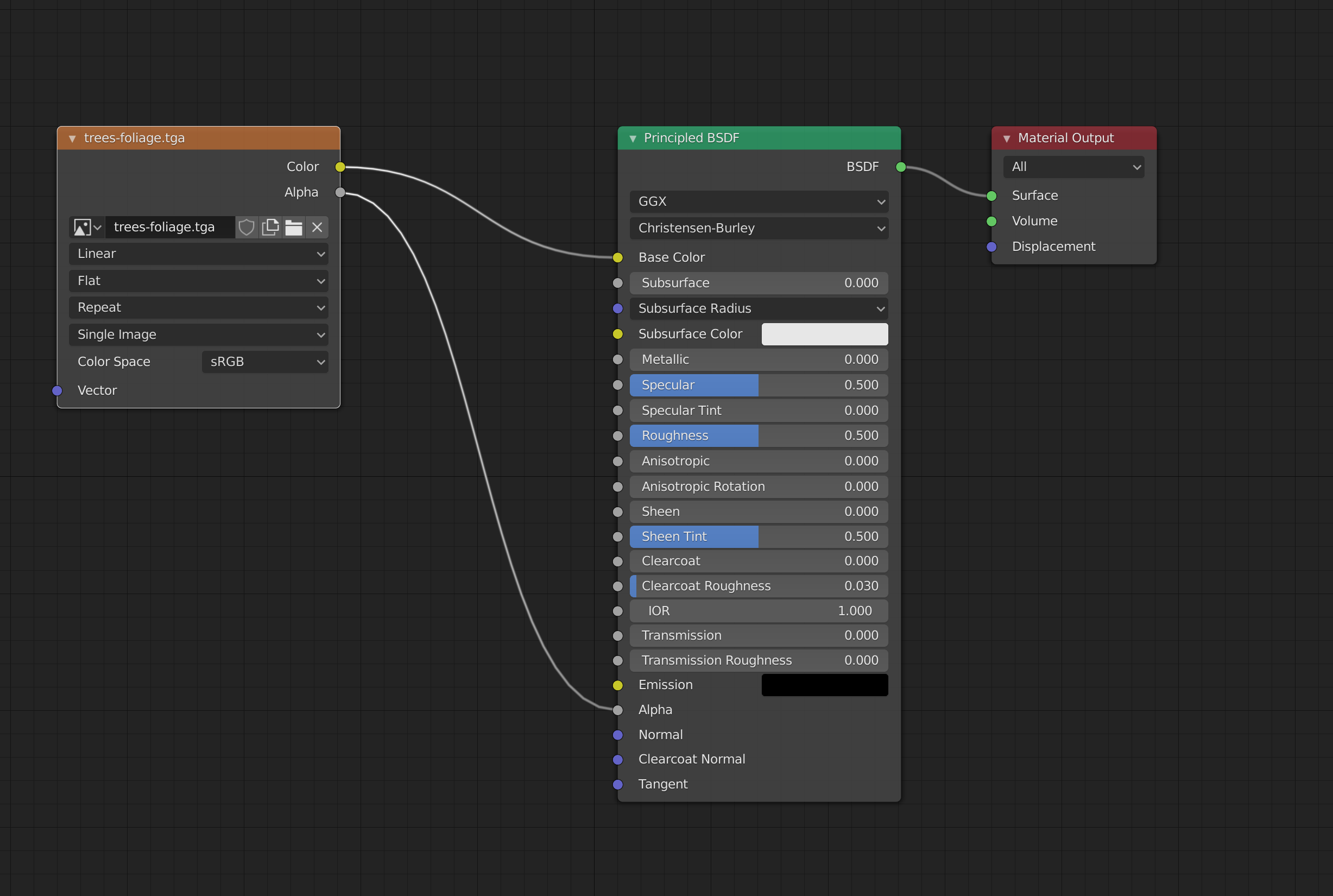 - Create a new material with the nodes as shown below.